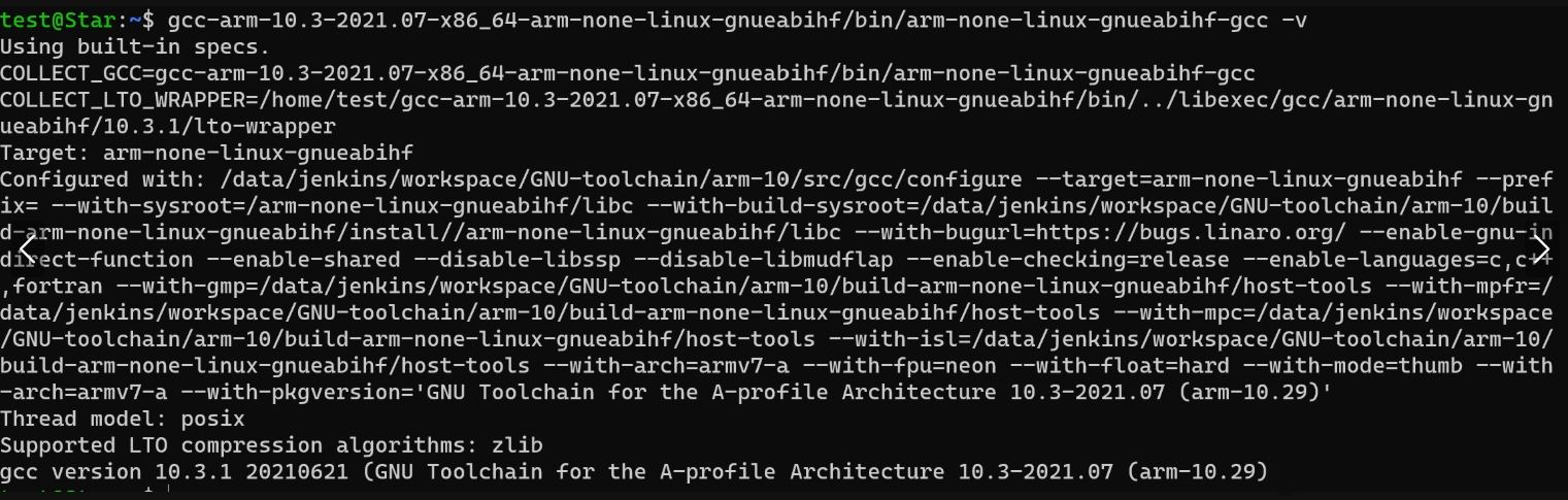 test@Star:~$ tar -vxf gcc-arm-10.3-2021.07-x86_64-arm-none-linux-gnueabihf.tar.bz2