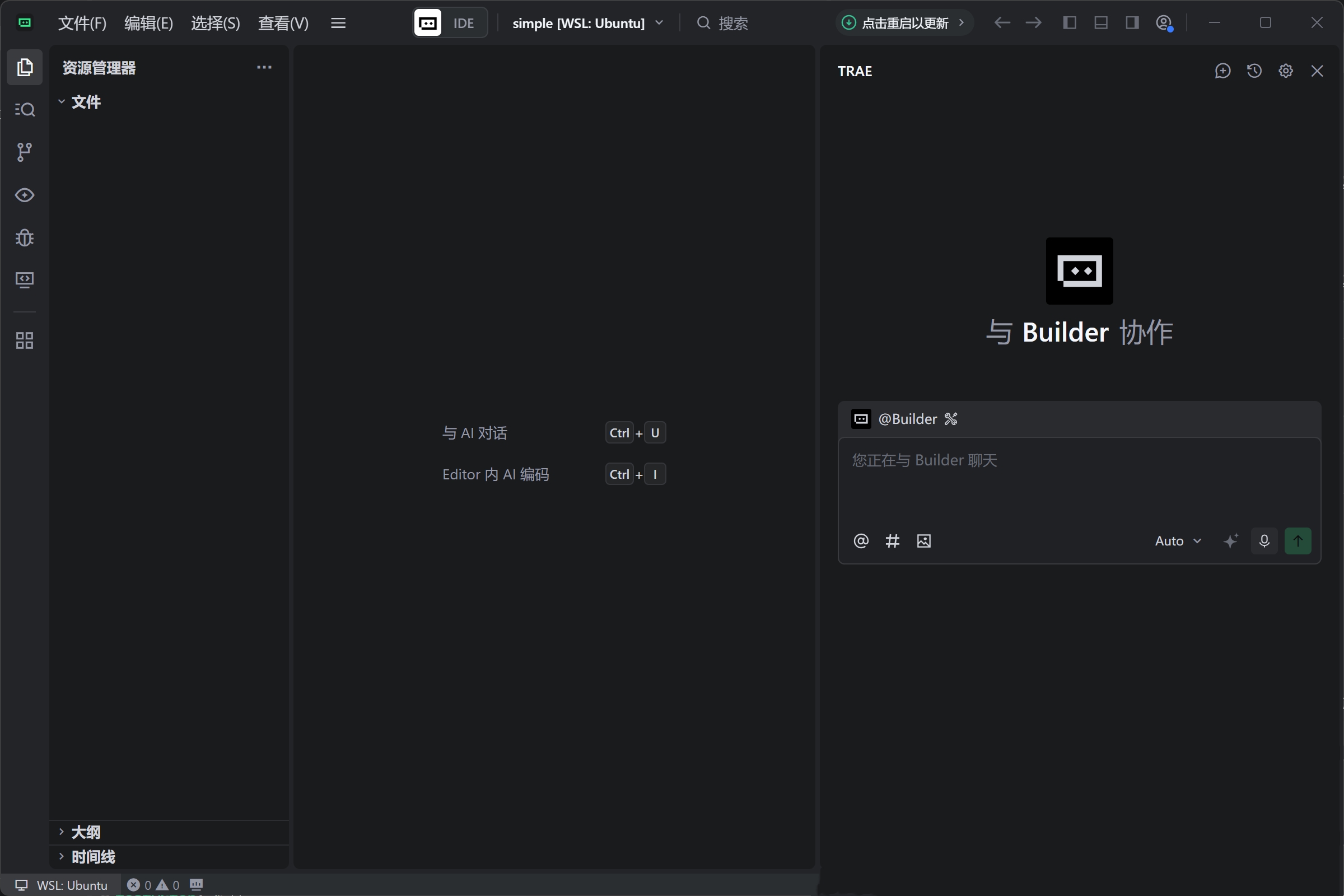 我们采用TRAE的默认配置,模型是Auto,采用Builder方式工作,输入如下提示词: