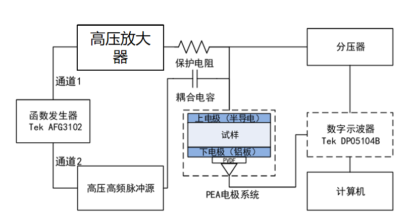 图:方波脉冲电场下聚酰亚胺空间电荷的直接检测实验装置图