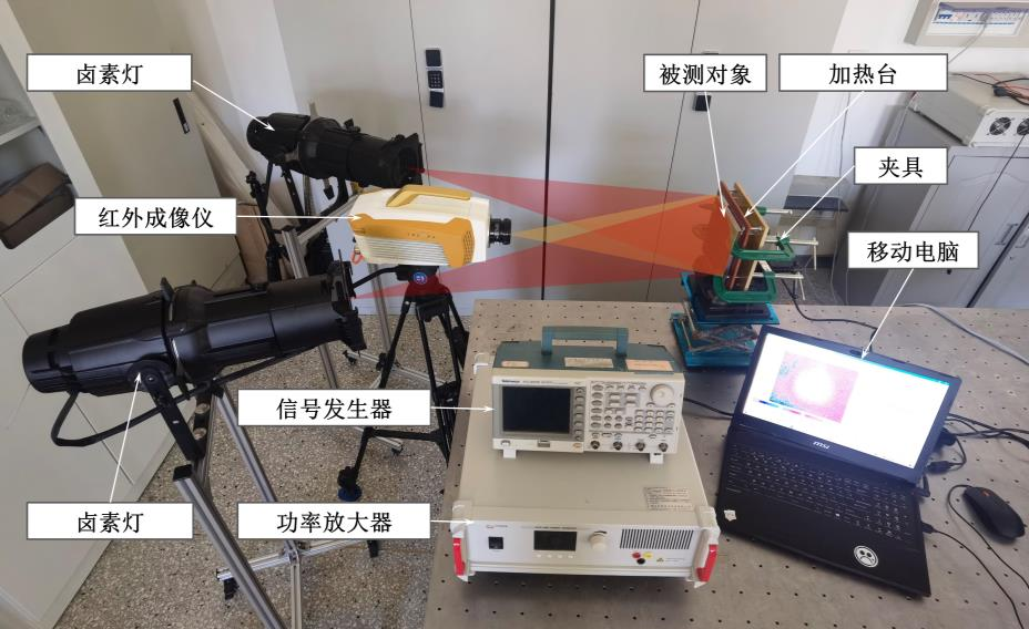 图:基于温度场加载的复合材料线性调制红外无损检测性能验证实验