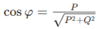 功率因数(cosφ)是有功功率与视在功率的比值,它的大小由有功功率(P)和无功功率(Q)共同决定,公式为: