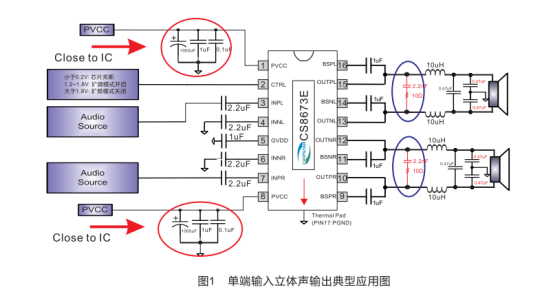 CTRL引脚兼具多功能,电压小于0.2V时进入待机模式(待机电流20~50μA),1.2~1.8V时正常工作且开启扩频,1.8V以上正常工作并关闭扩频,不可悬空,关断电源前建议先置于待机模式以优化性能。保护机制完善,输出端短路时立即关断输出,故障排除后110ms自动恢复;结温超过170℃(±15℃容差)时触发过热保护,温度下降20℃后自动重启;还内置过流保护,有效保护芯片与扬声器。
