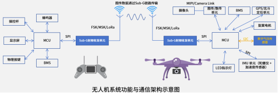 如无人机系统功能与通信架构示意图所示,无人机高度的精准控制并非通过单一功能单元即可完成,而是要依赖多源信息融合。