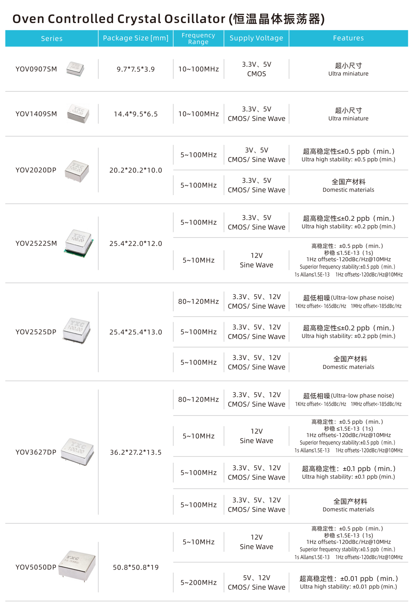 针对GNSS接收机不同场景的个性化需求,扬兴科技构建全系列OCXO产品矩阵,兼顾精度、尺寸与功耗平衡,主要产品系列及核心配置如下: