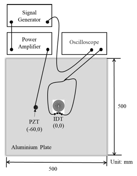 实验原理:实验基于压电效应(PVDF材料实现机电信号转换)、IDT宽频带设计(优化叉指参数实现多频率融合)、环形阵列全方位特性(周向波束指向性一致)及Lamb波传播特性(板状结构中远距低衰减),通过Lamb波的反射与散射识别结构损伤,最终实现宽频带、全方位的结构健康监测与损伤定位。