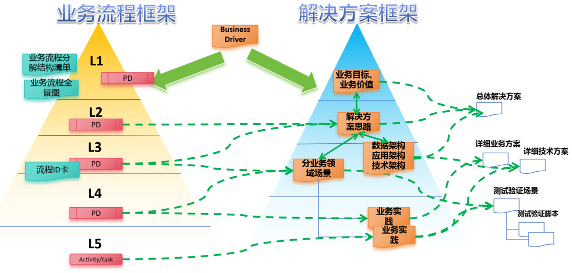 左边是业务流程,右边是解决方案。