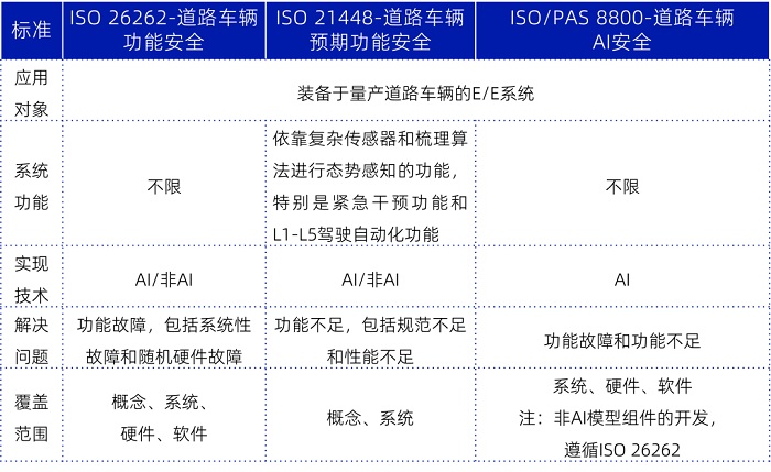 表2 ISO/PAS 8800和ISO 26262、ISO 21448的区别和联系