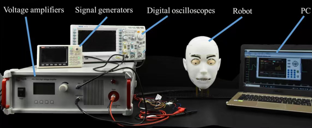 图:高压放大器ATA-7030在电致变形柔性致动器表情机器人控制实验中的应用