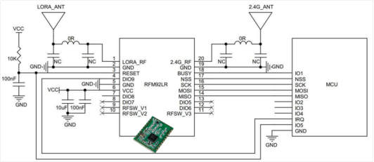RFM92LR还采用了Sub-GHz/2.4GHz双天线接口设计,方便用户根据实际应用场景和需求,灵活选择使用Sub-GHz频段或2.4GHz频段进行通信。