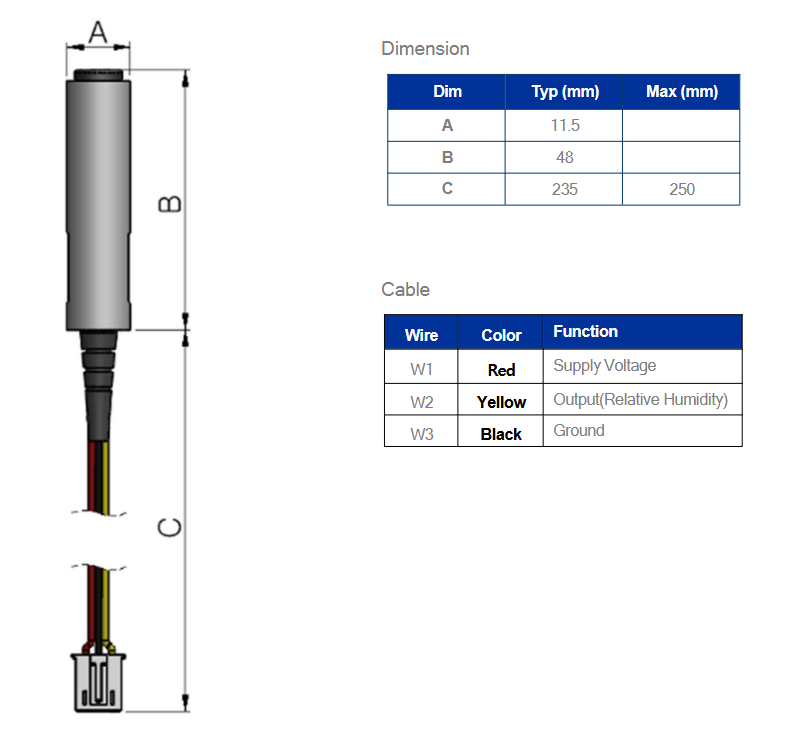 HW2200湿度传感器可以承受的环境温度范围为-40℃至60℃,可以适应绝大部分室外环境温度。具有较小的尺寸,并使用密封外壳,可不受浸水影响。同时,产品不含铅、铬(6+)、镉和汞,更加安全环保,还可支持反接保护,使传感器更加可靠。