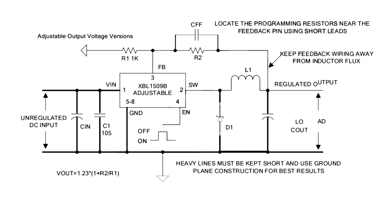 - CFF布局:必须紧靠反馈电阻R2,避免引入寄生电感。