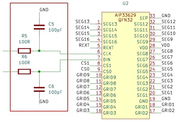 2)RC低通滤波:在靠近IC的信号线引脚处,对地并联100pF-220pF陶瓷电容 + 串联 100Ω电阻(构成RC低通滤波),滤除高频噪声。