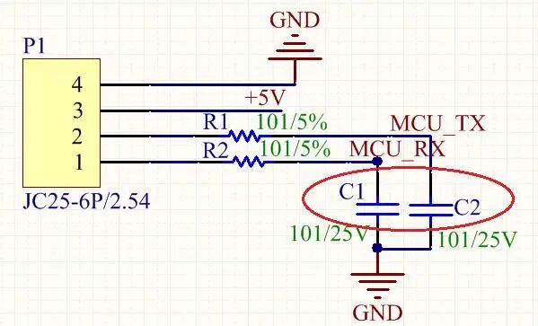 芯片引脚需连接长线与外部通信,如UART、I2C等,则建议在该长线的MCU引脚端口附近接101电容,可有效降低长线引起的天线效应。毛刺的频率和端口电容可参考如下: