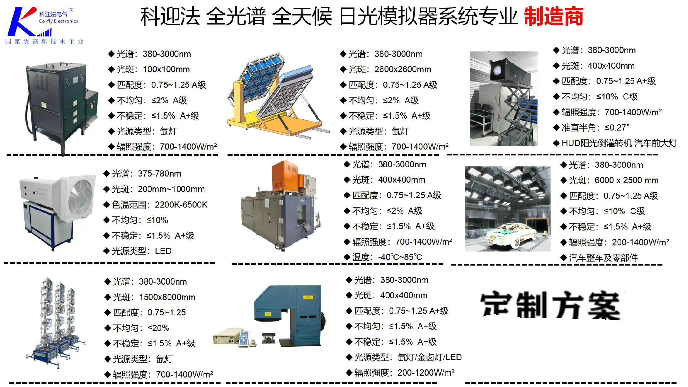 科迎法电气 全光谱准直型太阳光模拟器为跨行业材料提供高精度老化测试与性能验证,能精准模拟自然光环境,支持光谱/ 亮度 / 色温调控。