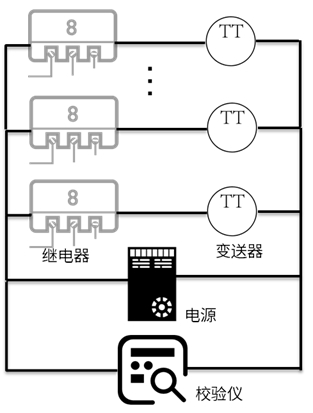 在产线上,一台CA550有时需要连续校验7~8台变送器,这时候就需要使用多路继电器进行切换,通过一定的时序逻辑实现自动化校准多台变送器的方案。