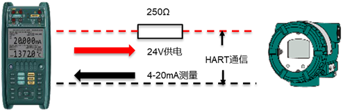 打开LOOP POWER为变送器提供24V环路电源,打开250Ω通信电阻,取得通讯信号。