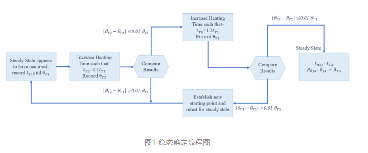 第三步再次将加热时间增加10%。之后再次记录热阻值,如果该热阻值与初始值的差值同样小于等于初始值的百分之一,则判断达到稳态。