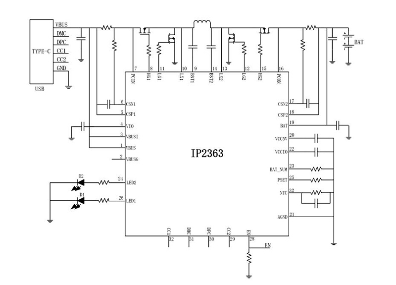 IP2363采用QFN32封装,尺寸为5mm×5mm,工作温度范围为-40℃至85℃,适用于工业级应用环境,便于集成到各类便携设备中。