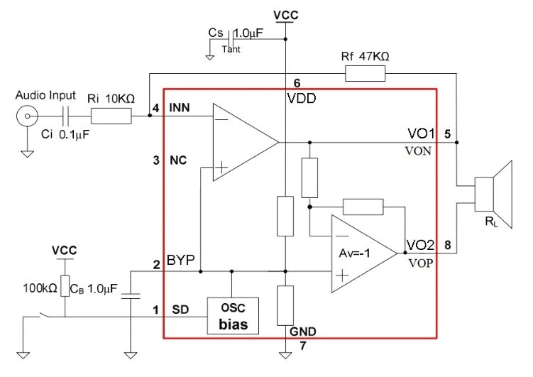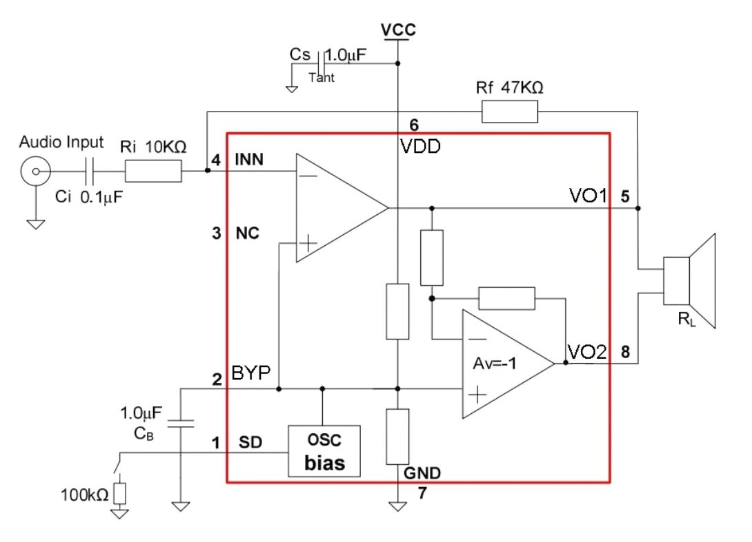 3.BYP电容可以改善开关机的POP声。一般情况下选择0.1uF~1uF的陶瓷电容。电容越大,POP声抑制效果越好,但是输出的延迟会越大。建议使用1uF以上的电容。