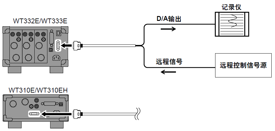 这个连接方法对功率分析仪有要求,需要功率分析仪选配了DA输出功能。功率分析仪的DA输出功能,可以把测量数据用模拟信号二次输出。