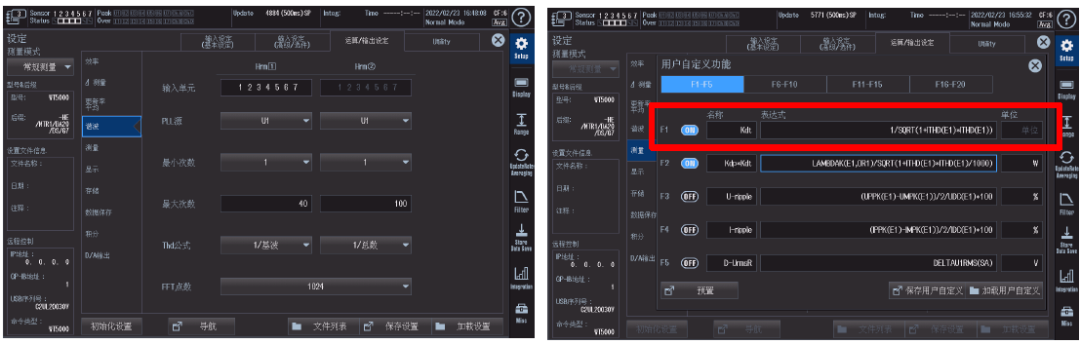 横河功率分析仪虽然可以直接测量电流的总谐波失真值,不过同一个基波,不同功率分析仪能分析的谐波上限会不一样。我们需要在谐波设置里面把测量条件设置到与规范一致,才能保证我们测量的这个电流总谐波失真值是合规的。具体设置如下图,谐波最小次数选择1,最大次数选择40,然后把THD公式选择为1/基波。得到ITHD以后,就可以使用自定义公式得到失真因数。