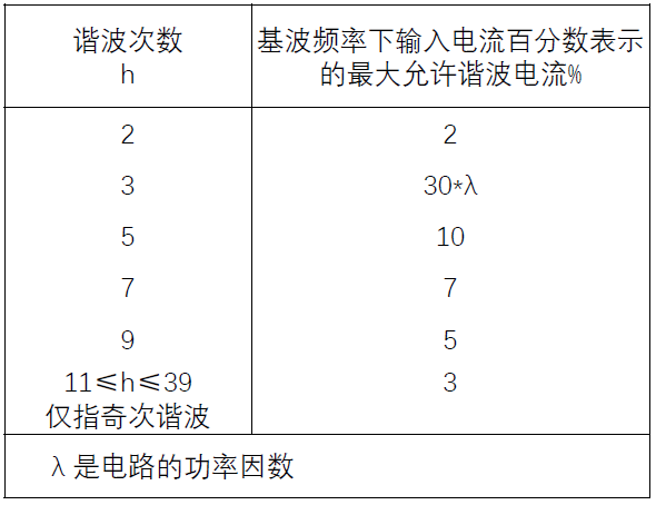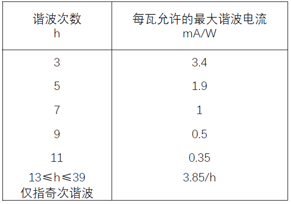 条件一:谐波电流不超过下表中功率相对限值。