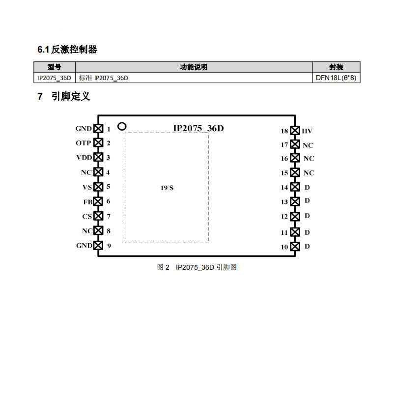 英集芯IP2075_38D是一款应用于氮化镓充电器、快速充电器、电源适配器的离线式AC/DC一次侧反激控制器。结合频率折返和谷底导通技术,减少开关损耗。宽广的自适应开关频率范围,优化轻负载和满负载效率。通过光耦反馈实现高精度输出电压/电流调节,兼容多种快充协议。内置高压启动电路,省去传统启动电阻,降低待机功耗。轻载或空载时进入突发模式,工作电流低至160µA,满足CoC V5和DoE VI等能效标准。集成氮化镓(GaN)FET,减少外围元件数量,简化电路设计,缩小产品体积。采用DFN18L(6×8)封装,进一步节省PCB空间。