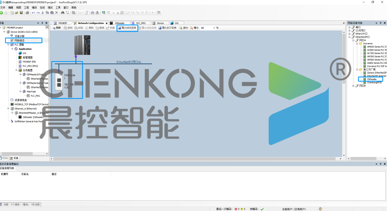 本期围绕着CK-FR09系列EtherNetIP协议与汇川InoProShop软件通讯组态问题: