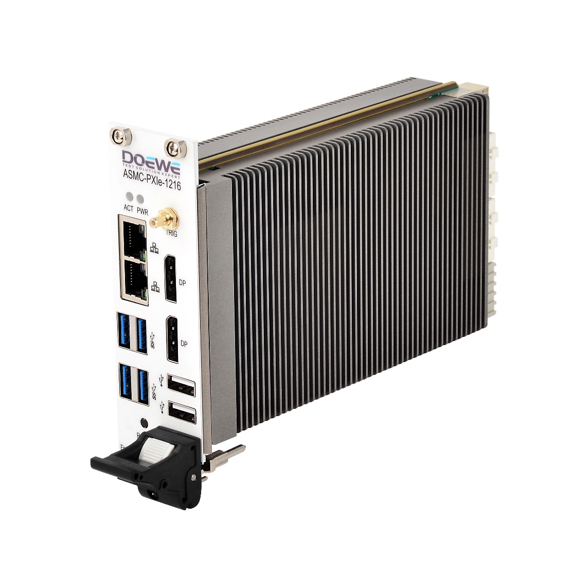 ASMC-PXIe-1216 采用 Intel® Core™ i7-6820EQ(2.8 GHz,四核八线程),3U 双槽结构,提供 16 GB 内存(可扩展)、512 GB SSD、2×千兆以太网、4×USB3.0/2×USB2.0 与 DisplayPort(最高 3840×2160@60 Hz)。控制器内置 PCIe 交换与智能带宽分配,可依据机箱 LINK 状态在 2 路(1×x8 + 1×x16)/4 路(4×x4)模式间自适应切换;支持 P2P 直连,降低数据回环延迟与 CPU 负载,并提供功耗与温度实时监测以保障长时稳定运行。SMB 触发/背板触发与最高对内 16 GB/s、对外 24 GB/s 的总线带宽,为高速采集与回放提供余量。