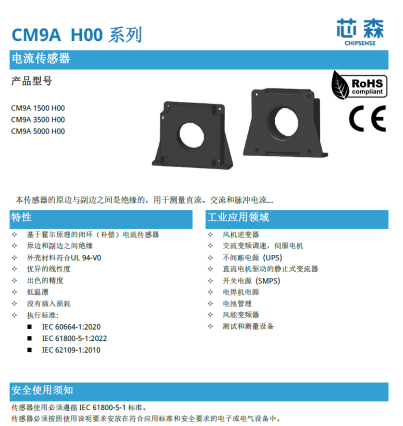 核心控制链路(高性能要求):在变流器的机侧和网侧,为了实现对电流矢量的毫秒级精确控制,通常选用高精度闭环霍尔电流传感器(如芯森电子的CM9A系列,具有±0.3%的精度、±0.1%线性误差和1500A-5000A量程)。它能够提供同时包含直流分量和交流分量的完整信号,保证转矩控制的精确性。