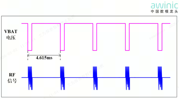 TDD(时分双工)干扰引发的杂音,其形成机理在艾为多款功放的规格书中均有详细描述,详情可查看如下TDD Noise原因分析。此类问题在2018年之前较为普遍,后续艾为对全系列功放的PSRR(电源抑制比)指标进行了迭代升级,目前全系列功放PSRR均可达到-80dB以上,TDD干扰杂音已较为少见。