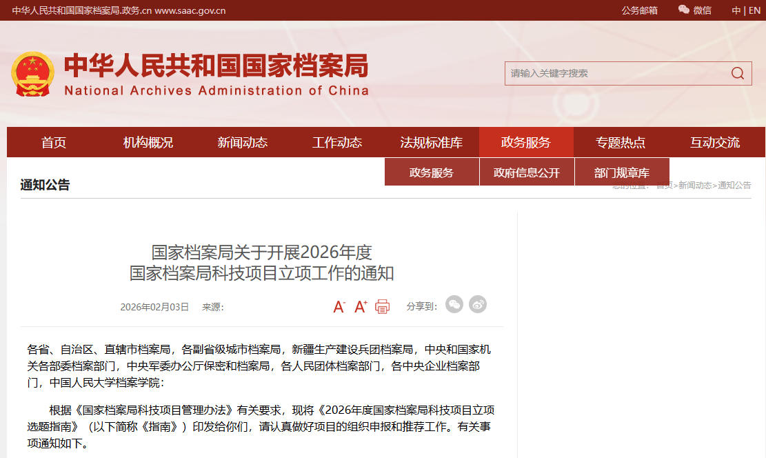 2026年2月3日,国家档案局发布《关于开展2026年度国家档案局科技项目立项工作的通知》,明确将“档案数据治理”置于“档案信息化建设”自主选题的核心,并设立“档案高质量数据集建设”“重大工程建设项目档案数据治理”等重点项目。这一举措不仅是国家“数据要素化”和“人工智能+”行动在档案领域的具体落实,更为档案管理从数字化走向智能化、从保管型转向治理型释放了明确信号。