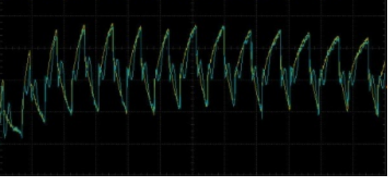 黄线:原边电阻0.01R的无感电阻两端波形。