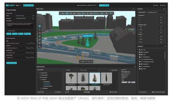 aiSim 6 持续扩展内嵌于 Web UI 的 3D 世界编辑器,支持 glTF 地图导出、程序化资产布置和 OpenMATERIAL 标准集成,兼容合成场景与神经重建场景两种环境类型。对于频繁需要调整静态场景元素的工程团队,地图迭代不再依赖第三方工具,工作流大幅收敛。