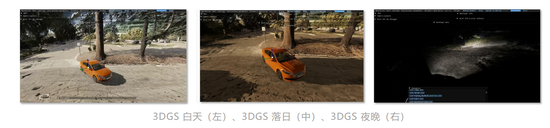 但 3DGS 有一个结构性局限:颜色与光照信息是"烘焙"进 splat 点云之中的,场景一旦采集,光照条件就被固定——原本在正午拍摄的路段,无法还原为傍晚或夜间环境。要覆盖不同光照条件下的测试用例,理论上只能反复出行采集,成本极高。