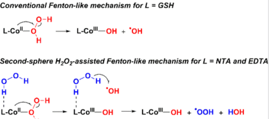 1️⃣ NTA / EDTA:第二配位球H₂O₂ 主导 → •OOH