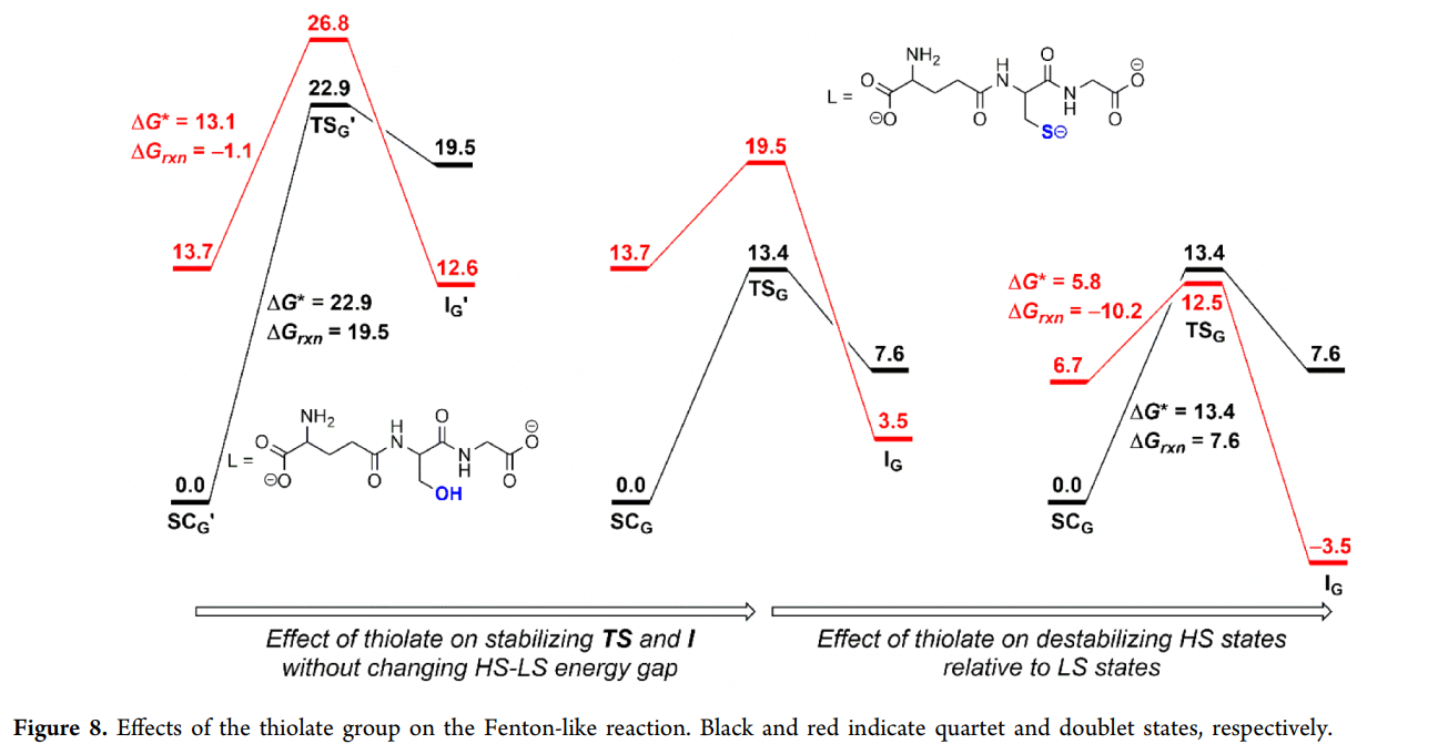 3️⃣ GSH:硫醇配位直接降低门槛→ •OH