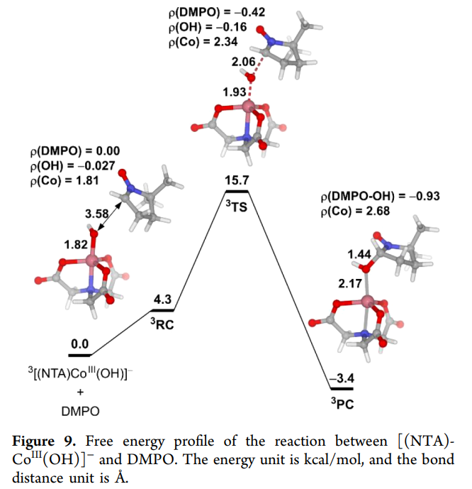 在自旋态处理方面,计算系统考察了 Co(II) 的高自旋态(S = 3/2)及 Co(III) 的不同自旋可能性,并在反应路径搜索中同时允许同自旋演化与自旋翻转。结果表明,Co(II) 向 Co(III) 转化过程中自旋态变化在能量上是可行的,其对应能垒并未构成主要动力学限制。