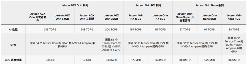 图:NVIDIA Jetson Orin系列规格,图源:Nvidia官网