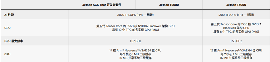图:NVIDIA Jetson Thor系列规格,图源:Nvidia官网