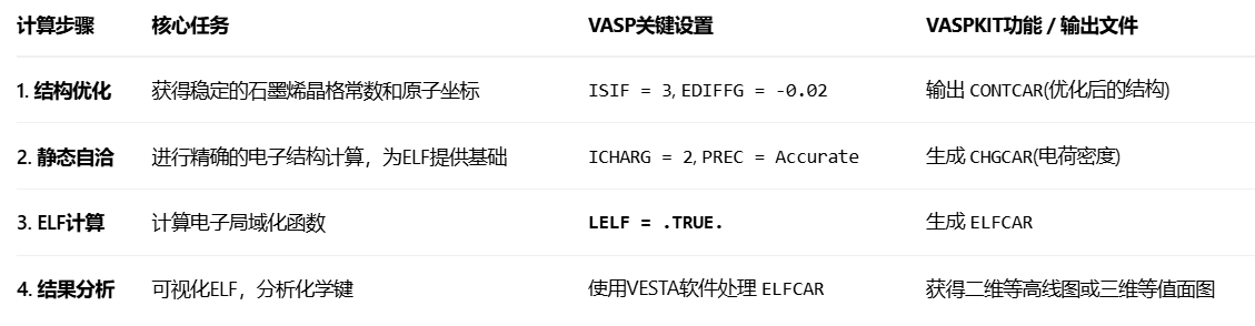 修改INCAR:将INCAR更改为静态计算设置,并启用ELF计算。