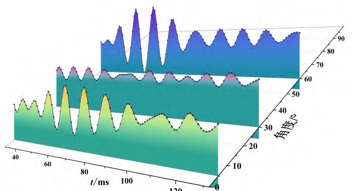 实验结果:实验通过超声实验系统结合变分模态分解与全聚焦成像算法,验证了孔隙介质中圆柱散射体声散射理论模型的正确性。研究结果表明:在不同探头夹角(5°、30°、60°)条件下,试验捕获的时域信号与理论预测的散射幅度比变化趋势一致,归一化后具有高度吻合性,证实了模型对散射场分布规律的有效表征。