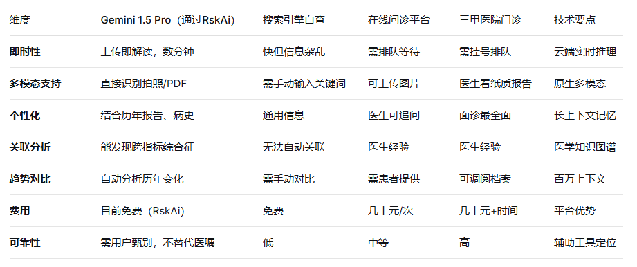 四、能力对比:Gemini与传统体检报告解读方式