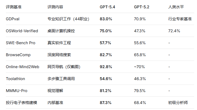 GPT-5.4在多项关键行业基准测试中刷新最优成绩