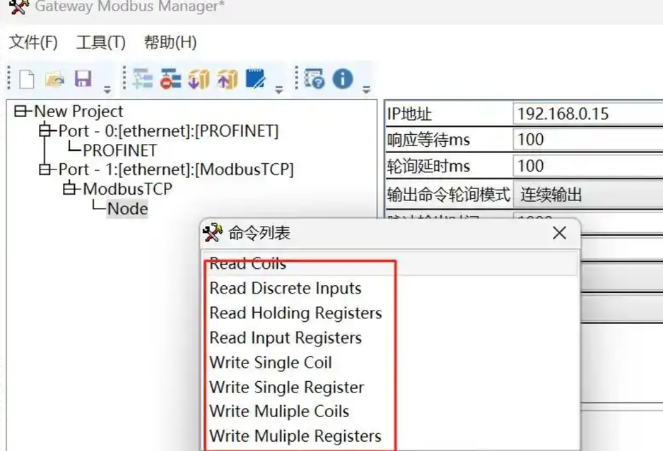确认无误后,生成配置并通过工具扫描网关默认IP,完成下载。上电后,若RUN灯常亮,说明ModbusTCP连接已建立。