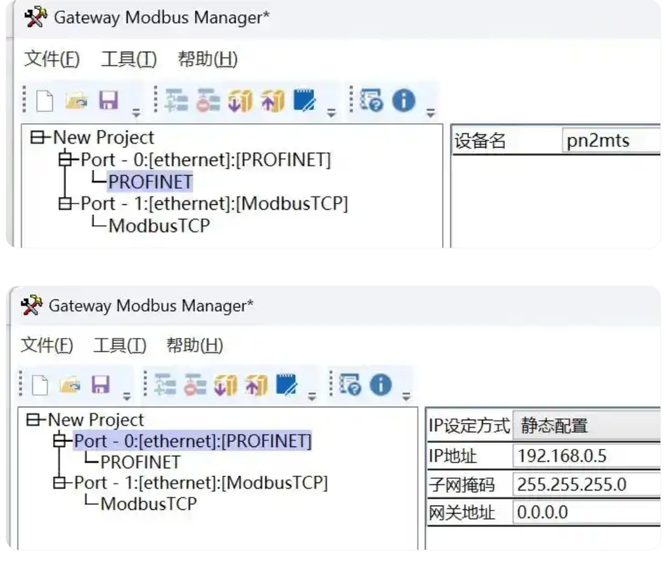 打开配置软件 Gateway Configuration Studio,新建项目时选择 PN2MTC 模板。