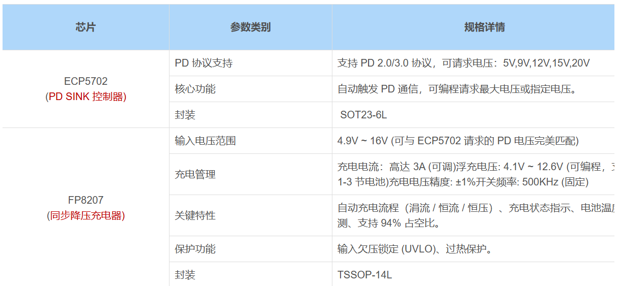通过这种“前端诱骗+后端降压”的架构,方案能够从普通的PD充电器获取最大功率,实现高达3A的大电流快速充电效果。