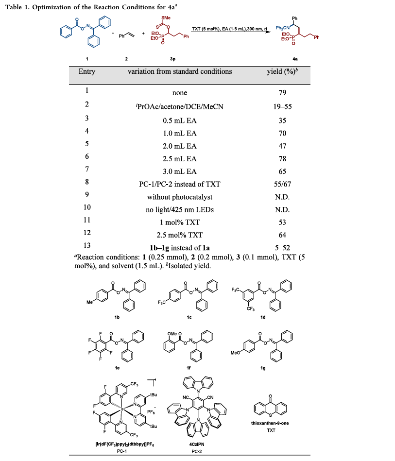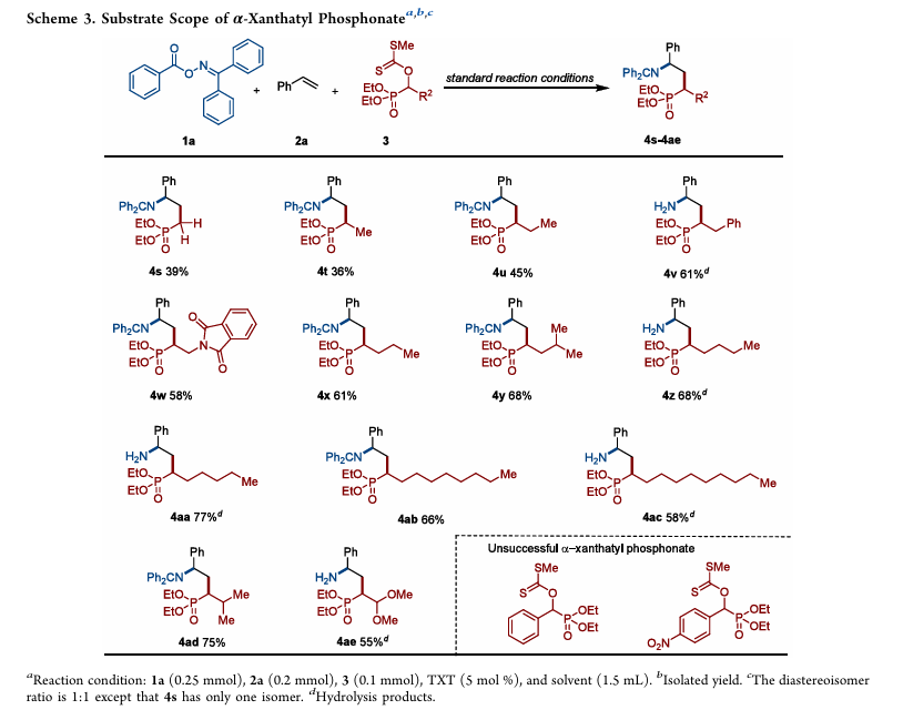本文通过光催化自由基接力策略,实现了 γ-氨基膦酸酯的模块化合成,展示了在单一反应体系中对多自由基中间体进行时序调控的可行性,为复杂含磷、含氮分子的构建提供了新的方法学范式。
