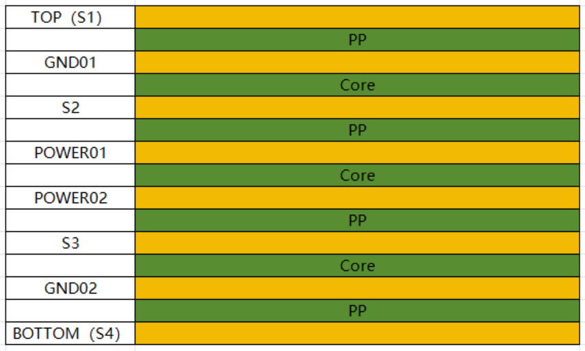 由于RK3568的电源种类和线比较多,板子空间比较大,正常情况下可以采用6层去设计,如果是密度比较高的核心板则采用8层板进行设计;核心板在层叠设计上的方案如下,此方案兼顾了无相邻信号层、层压结构对称,且具备2个电源层,能够解决电源种类多的需求;但需要注意的是:由于主电源距离GND层较远,电源平面阻抗较高,在层厚设计时,应该拉开S2与P1的间距(同理拉开S3与P2的间距),缩小G1与S2的间距(同理缩小G3与S3的间距)。