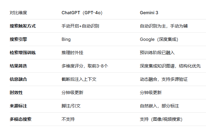 Gemini 3的联网搜索功能在架构上与GPT-4o有显著差异,更强调与模型本身的深度集成。